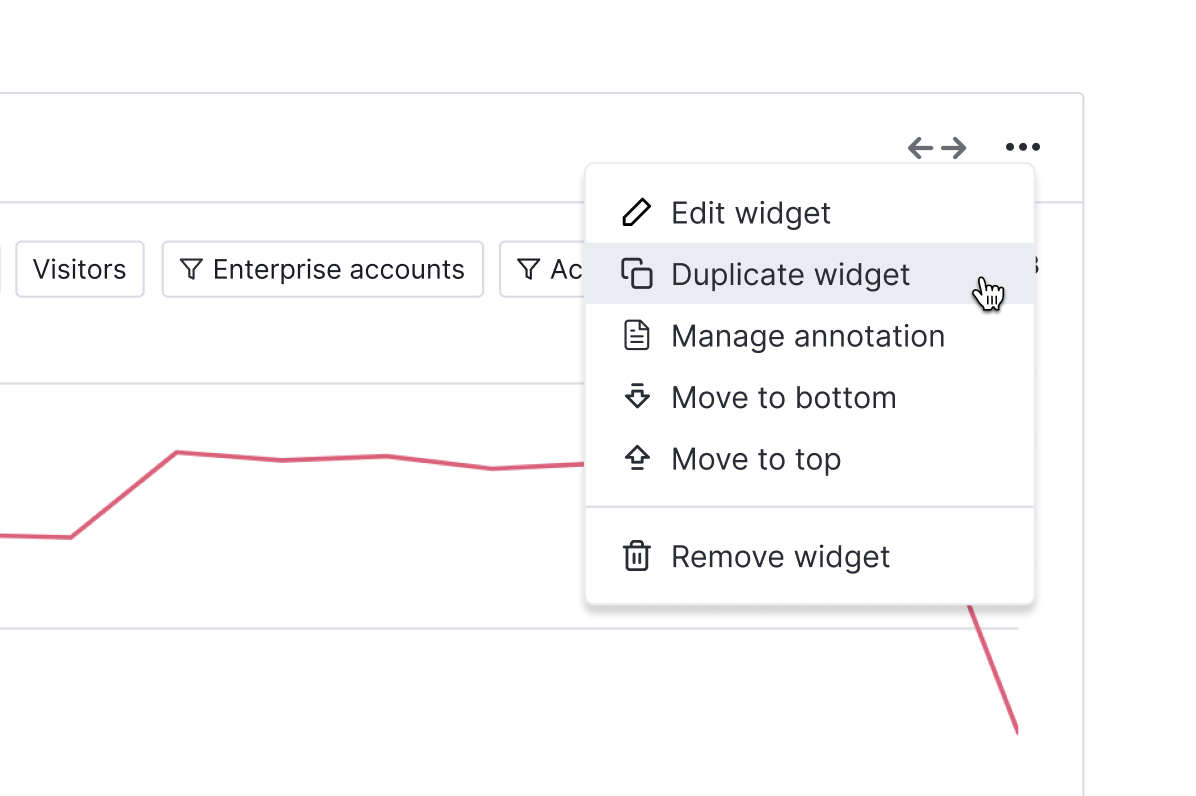 Duplicate a widget on a dashboard without having to go into the widget catalogue and add it. Once duplicated, you’ll get the widget settings pre-filled with the previous selections, so you can change settings as needed. This is especially helpful for text widgets, if you want to copy all the same formatting.