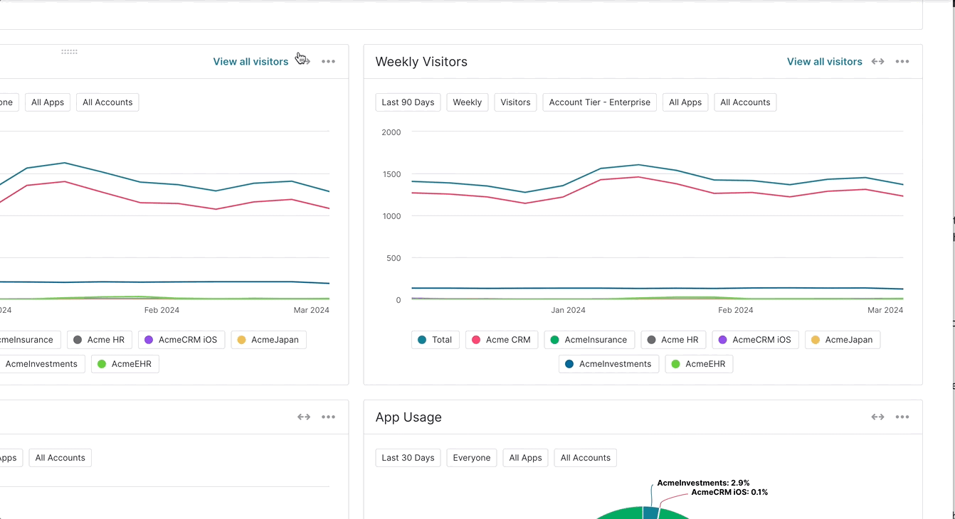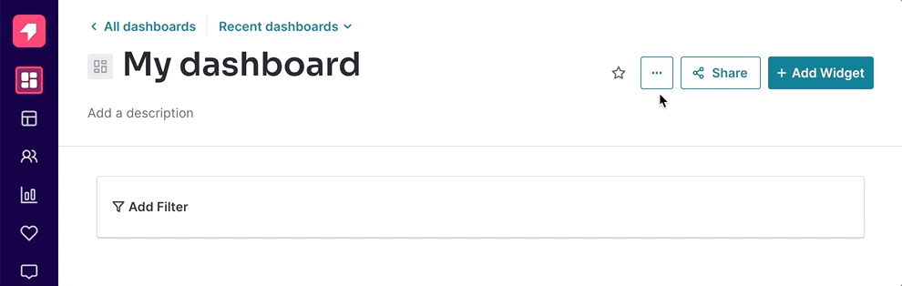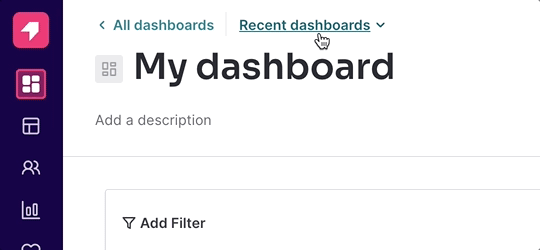 Easily access recently visited dashboards while on another dashboard, or see the dashboards list without having to use the navigation bar. Your top five recently visited dashboards will be just a click away.