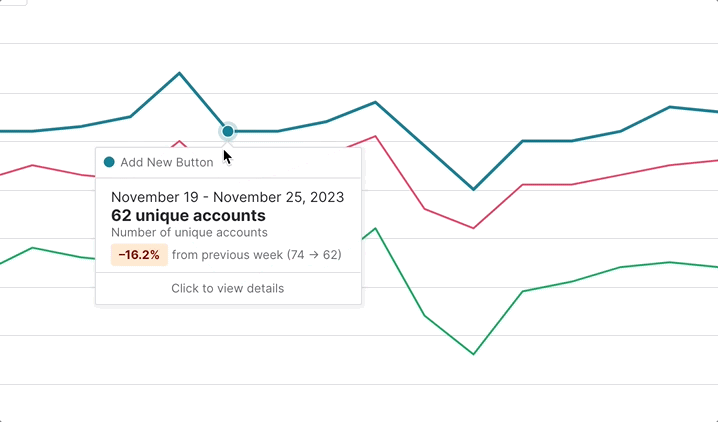 Forget using excel or a calculator –– you can now see trending data in all tooltips for time series charts throughout the application. Understand what % your data has increased or decreased month over month, or week over week.